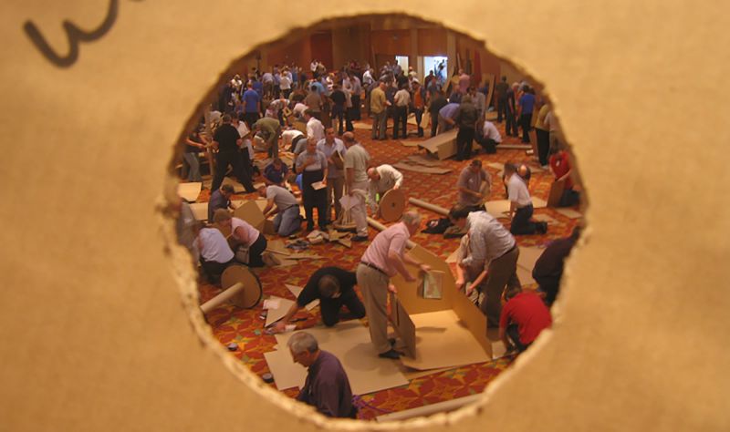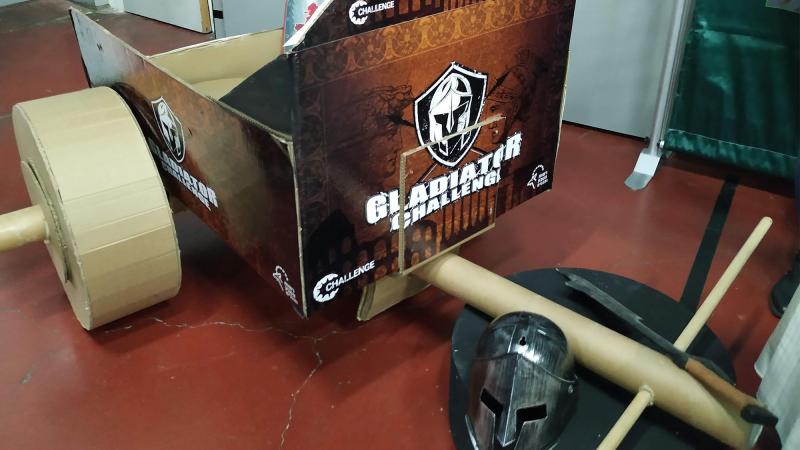 In Flat Out - Chariot Challenge teams build a full scale Roman or Celtic chariot. Working from supplied plans, teams turn a ‘flat-pack’ kit of materials into the ultimate cardboard racing vehicle - machine and human-power working in harmony. The challenge concludes with a race, where the teams pit their chariots against each other in a test of speed and skill, or a gladiator-themed parade in an atmosphere to rival that of the Circus Maximus.